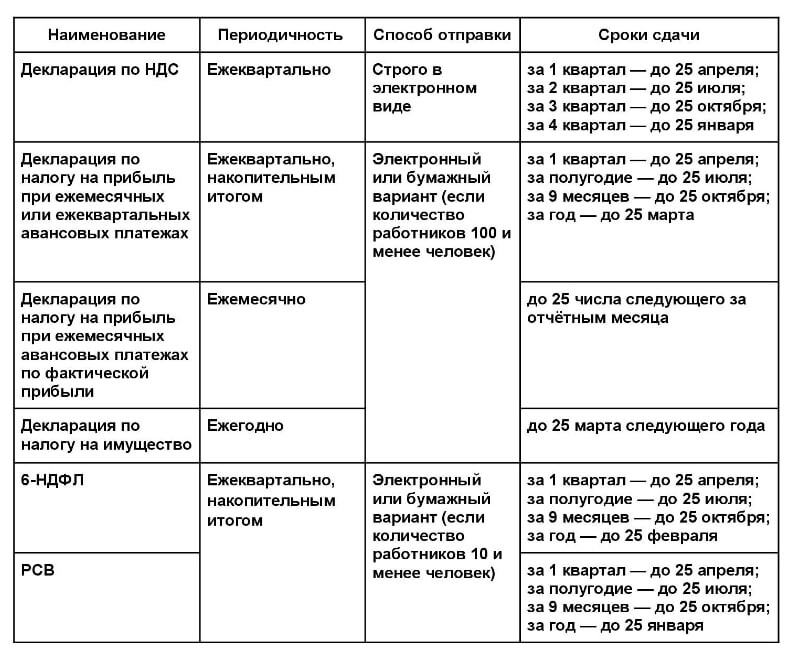 Налоговая отчетность и сроки